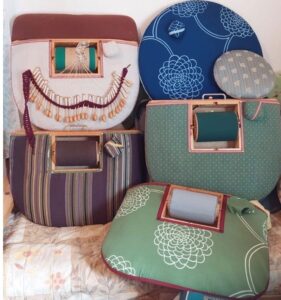 nypylöihin on jäänyt jämiä aikaisemmista töistä. Kulta- ja hopealangat tehosteina kannattaa myös ottaa mukaan. Puolaamaan ei kannata ryhtyä, sen ehtii tehdä paikan päällä. Ellei sopivia